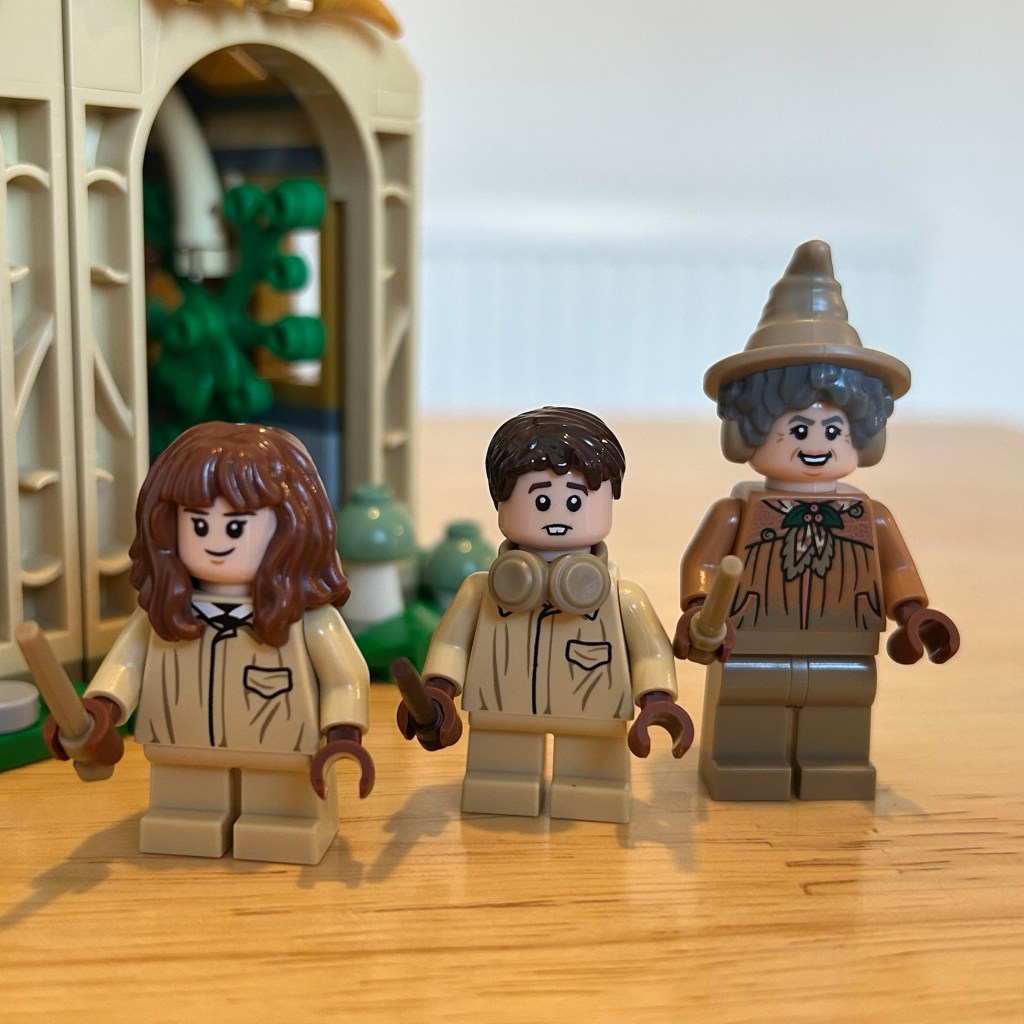 The three minifigures are pretty great Neville and Hermione have the same print which I’m fine with and what seems to be a new Professor Sprout which is always welcome!