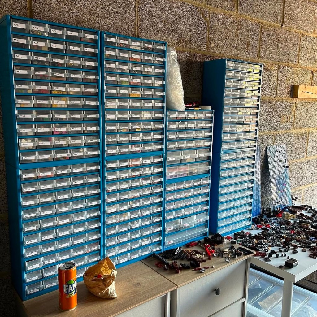 I started with the towers with the small plastic drawers which didn’t work out because of my labelling system I had no idea where anything was I unless I had bricklink, which unfortunately got hacked into soon after I started, so I had to start over. With a mix of life, building LEGO and moving house it’s taken a long time to get it all in order, but now I finally feel like I’m getting somewhere.