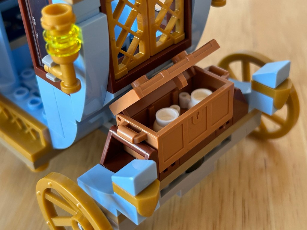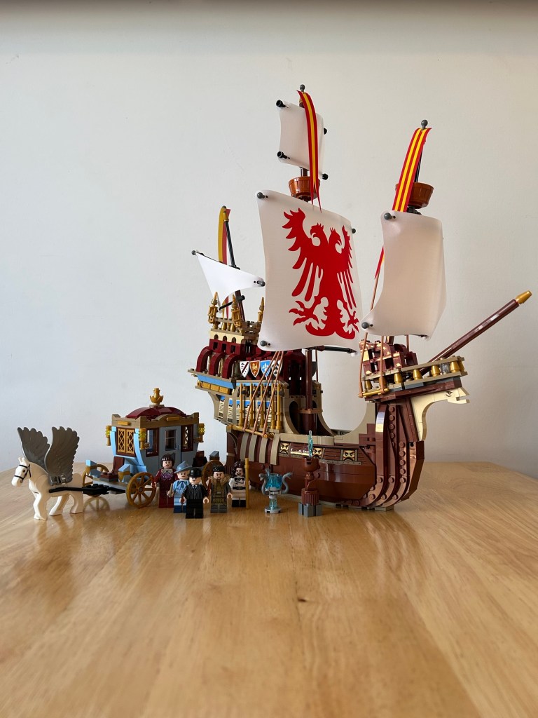 This has been a lego set before but was released by itself, and much larger. I would have happily had the pieces from this go towards the ship for a slightly larger ship but it is a lovely addition, and its a good way for new collectors for getting the carriage without going on the secondary market for getting the old one. I believe the winged horse is the same as before, the carriage is smaller but still looks rather stunning, looking very classic French. Not much going on in the inside but there is room for both figures to sit down and some tea cups in the luggage on the rear, overall a nice build.